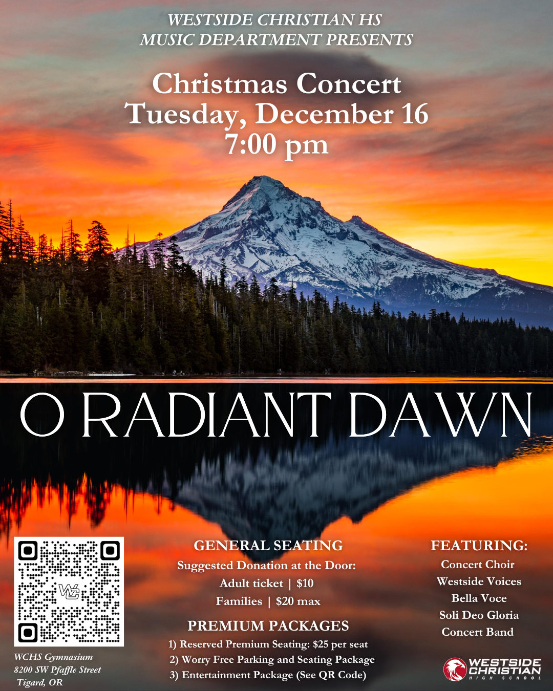 On Tuesday, we hope to see you at our Annual Christmas Concert featuring Westside's award-winning ensembles: Concert Band, Concert Choir, Westside Voices, and Soli Deo Gloria.
